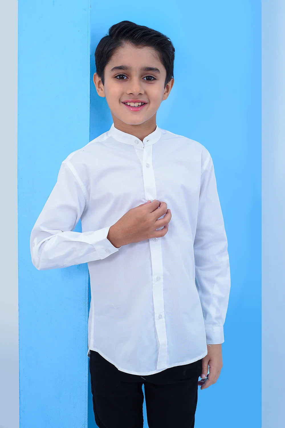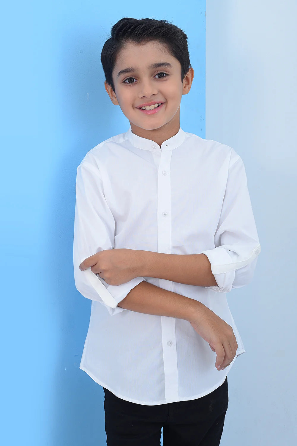 Boys Band Collar Casual Lining Shirt BCS23#10 - White